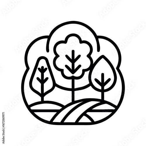 © MahmudulHassan, Fototapeta premium Black and White Trees with Pathway and Circular Icon