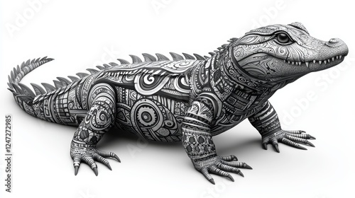 Obraz premium Black and White Tribal Feline Crocodile with Intricate Patterns and Designs
