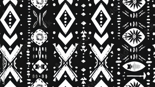 Fototapeta premium Black and white tribal seamless pattern with bold geometric shapes. Great for ethnic, cultural, and traditional themes.