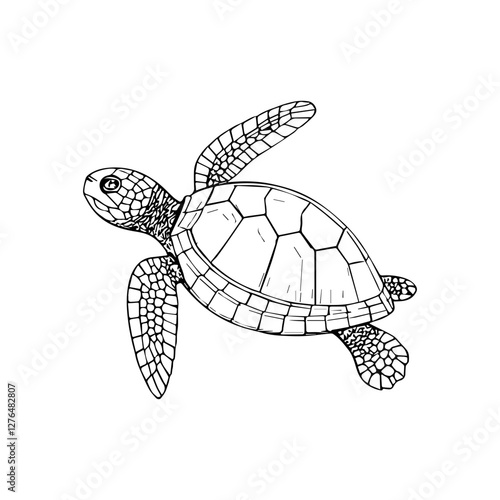Fototapeta premium Black and White Turtle Line Art Vector Illustration