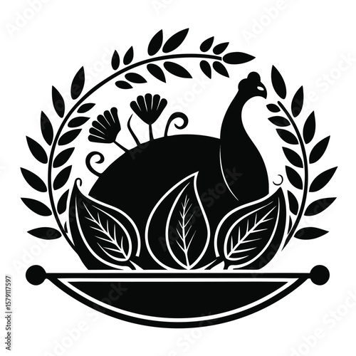 Fototapeta premium Black and white vector illustration of a bird and an Easter egg with a tribal floral design element