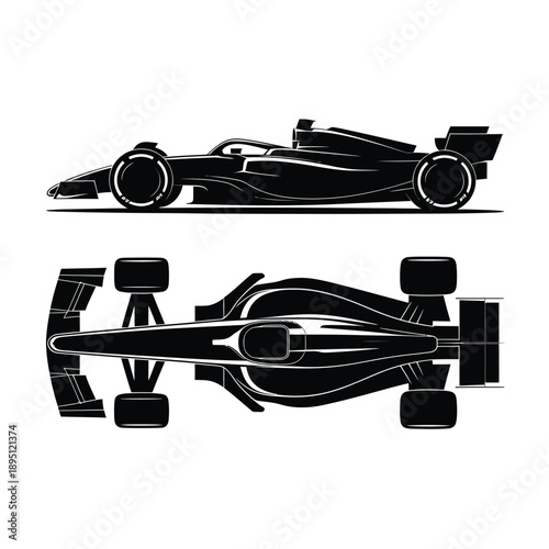 Fototapeta premium Black and white vector illustration of a formula one race car design