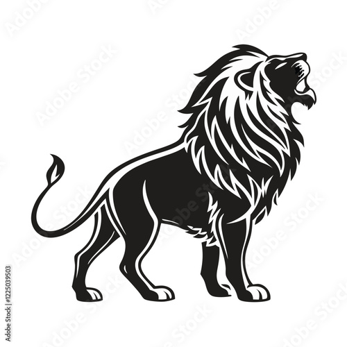 © skcpdesign, Obraz premium black and white Vector illustration of a lion and silhouette design