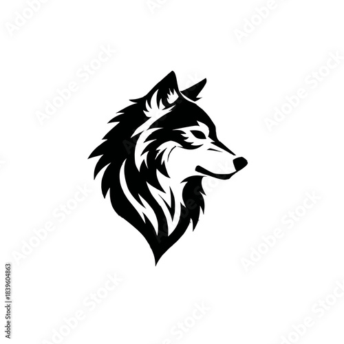 © ikk.gtg, Naklejka premium Black and white vector illustration of a wolfs head profile