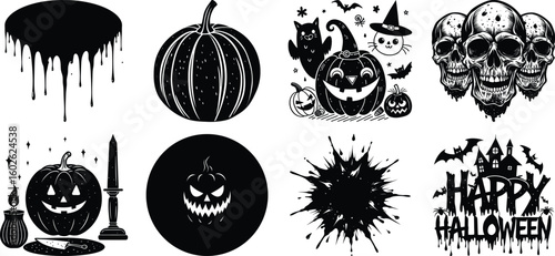 Naklejka premium black and white vector illustration of an halloween set