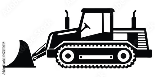 Naklejka premium Black And White Vector Illustration Of Bulldozer Heavy Equipment Vehicle Isolated