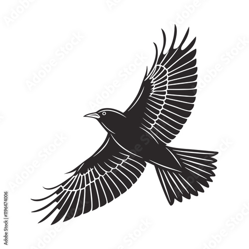 Obraz premium black and white vector of a raven in flight perfect for tattoo