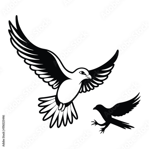 © Swapna graphics, Fototapeta premium black-and-white vector silhouette combining a fulmar bird flying
