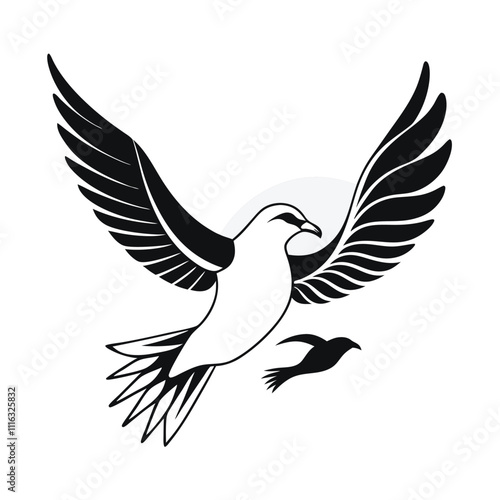 © Swapna graphics, Fototapeta premium black-and-white vector silhouette combining a fulmar bird flying