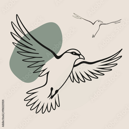 © Swapna graphics, Fototapeta premium black-and-white vector silhouette combining a fulmar bird flying