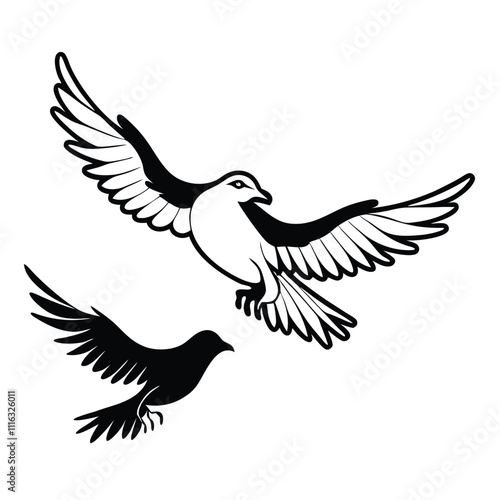 © Swapna graphics, Fototapeta premium black-and-white vector silhouette combining a fulmar bird flying