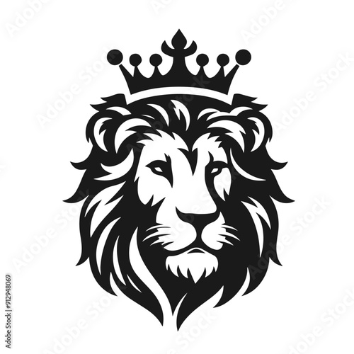 © Blakez, Obraz premium Black and white vector silhouette of a Lion face isolated on white background