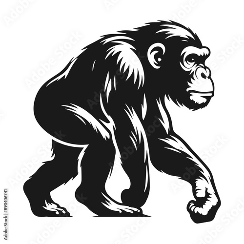 © Awais, Obraz premium Black and white vector silhouette of a Monkey isolated on white background