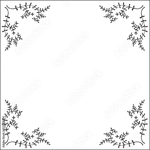Fototapeta premium Black and white vegetal ornamental frame, decorative border for greeting cards, banners, invitations. Isolated vector illustration.
