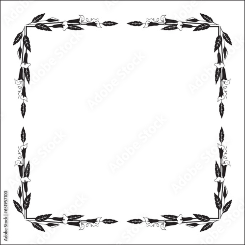 Obraz premium Black and white vegetal ornamental frame with kala flowers, decorative border, corners.