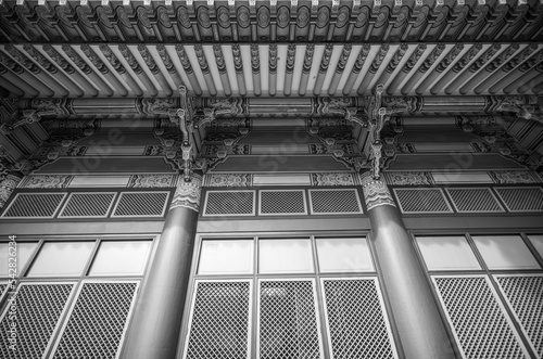© ttrimmer, Obraz premium Black and White Vintage Wood Building Wall.