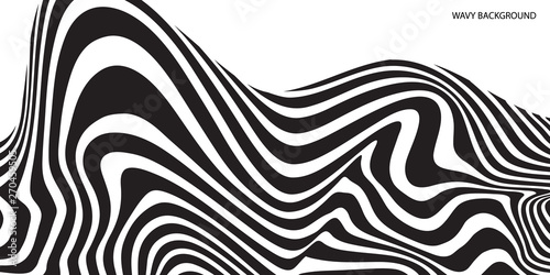Obraz premium Black and white wave stripe optical abstract design. Vector background....