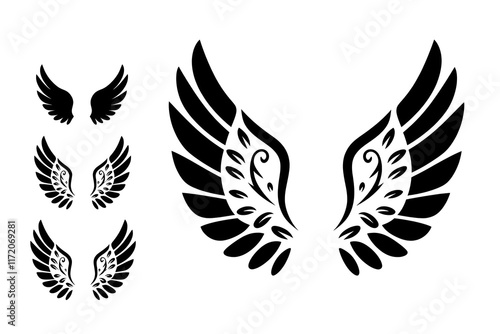 Obraz premium black and white wing designs in various styles for creative or symbolic artwork