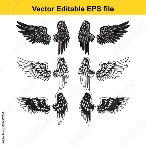 Obraz premium Black and White Wing Illustrations Set - Vector Graphics Collection