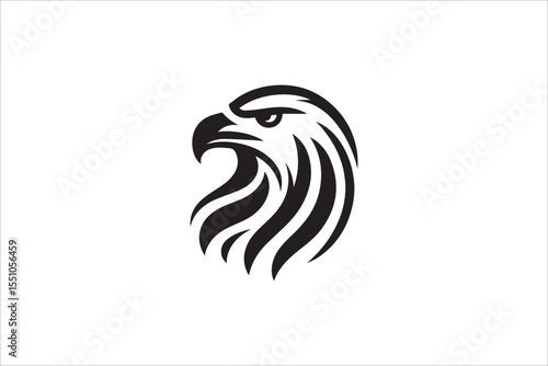 © Likhon, Naklejka premium Black and white, with a simple and minimalistic eagle head silhouette isolated on a white background