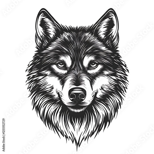 Fototapeta premium Black and white wolf head, artistic illustration, studio shot, possible for t-shirt design