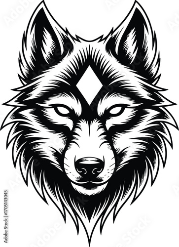 Naklejka premium Black and white wolf head with diamond symbol animal