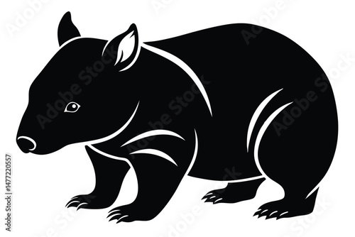 Fototapeta premium Black and White Wombat Graphic Illustration, Native Australian Marsupial, Silhouette Art