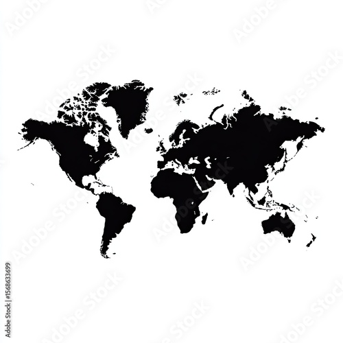 © R&R Studio, Obraz premium Black and White World Map Illustration