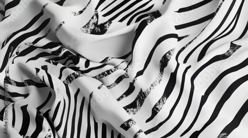 Obraz premium Black and White Zebra Print Fabric with Elegant Flowing Texture