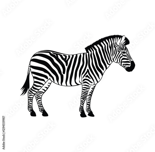 Naklejka premium Black and White Zebra Vector Illustration – Animal Silhouette on White...