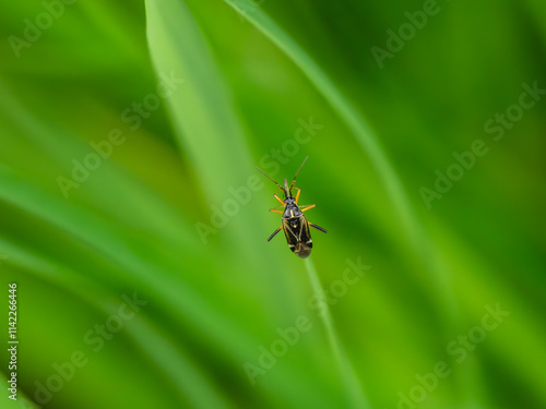 © Stephan Morris , Naklejka premium Black and Yellow Beetle on a Grass Stem