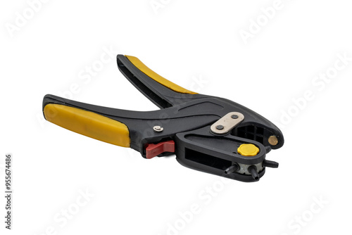 © EDUARDOIVAN, Fototapeta premium black and yellow belt hole punch machine