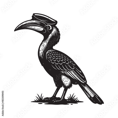 Fototapeta premium Black and yellow billed hornbill. Hornbill Bird Vector Illustration With...