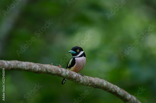 © forest71, Fototapeta premium Black and Yellow broadbills perches on a brunch