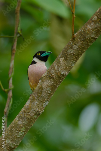 © forest71, Fototapeta premium Black and Yellow broadbills perches on a brunch