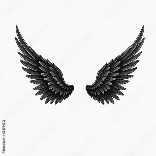 Obraz premium Black angel wings. Black and white image.