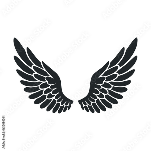 Obraz premium Black angel wings icon on white background: simple feathered design