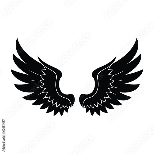 © Online Graphic BD, Obraz premium Black angel wings silhouette isolated on white background