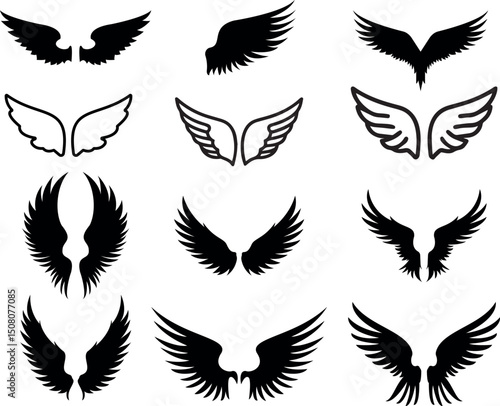 © Dipok, Obraz premium Black Angel Wings Silhouette Set Vector Illustration