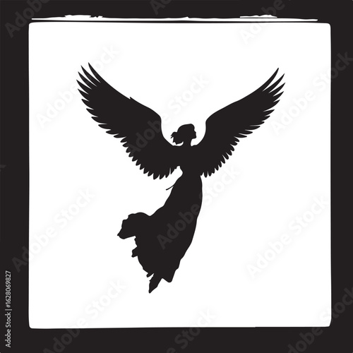 Obraz premium Black Angel Wings Spread Wide silhouette white