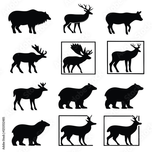 Obraz premium Black Animal Silhouettes Wildlife Vector Set