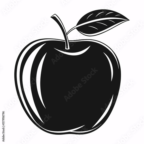 © extra, Obraz premium Black apple with leaf vector illustration fruit stem
