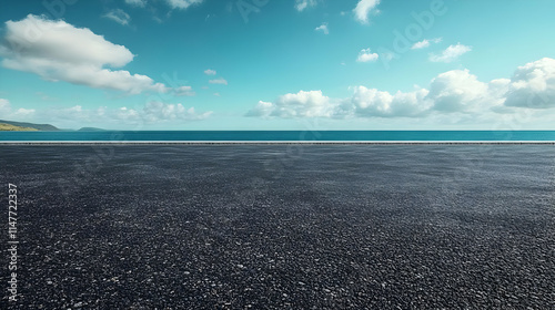 Obraz premium Black Asphalt Road Leading to Ocean Horizon - Realistic Background