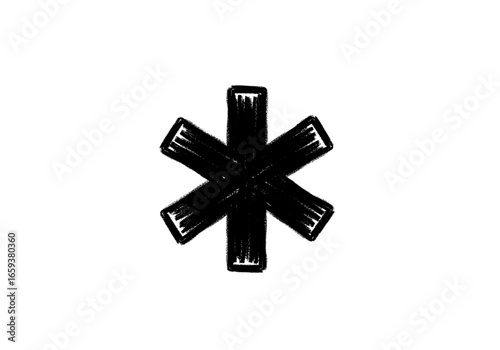 Obraz premium Black asterisk symbol with a hand-drawn textured appearance isolated on white...