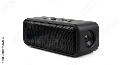 © 1St TH, Obraz premium Black Audio Speaker With Textured Front Panel Isolated On White Background