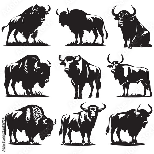 © Craftdot, Fototapeta premium Black Aurochs Silhouette Vector, High Quality Illustration on White Background