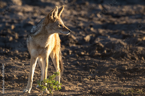 Fototapeta premium Black-backed Jackal in Field with Early Morning Light