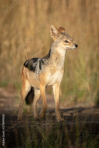 © Nick Dale, Fototapeta premium Black-backed jackal stands lifting paw in sunshine