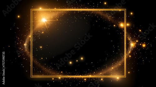 Obraz premium Black background decorated with dazzling empty golden rectangular frame
