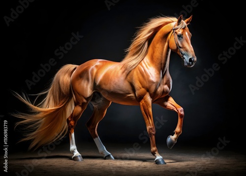 Obraz premium Black Background Horse Photography, Elegant Dark Horse Portrait, Stallion Photo Shoot, Majestic Equine Image, Dark Horse Fashion
